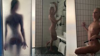 Apex_SG's natural boobs jiggle while getting ready for shower