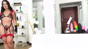 Miss Raquel enjoys playing with a big dildo and getting fucked by it.