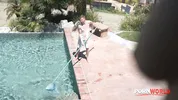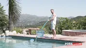 Bored housewife Christie Stevens seduces the pool guy for anal fun.