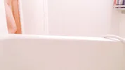 It is really very hot in the shower room of their common house with a sister.