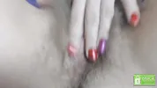 A close-up look at a hairy pussy of a blonde model who loves to masturbate