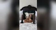 Pop smoke beats my back while I have a butt plug tail on