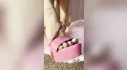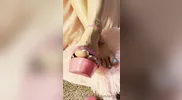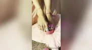 Mistress Damazonia’s sexy feet in transparent shoes crush balls with pleasure