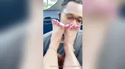 Red flip flops and red toes action with SnowyArches in a hot scene.