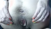 Hairy pussy play and farting action with a pregnant model