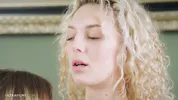 Blonde girl in lingerie has fun with girlfriend, featuring hot kissing scenes.