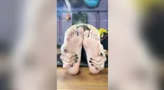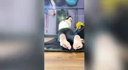 A cute girl gets her sexy pink soles licked passionately, and then she plays with ...