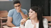 A step-sister is giving her brother a lesson in many different subjects.