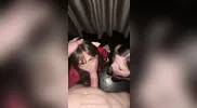 Girlfriends have a threesome sex with a guy and make him come, featuring Rebecca N...