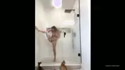 A red-haired beauty has sex after taking a shower, showcasing her wild side.