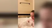 A girl tried to endure a hot bath, but could not hold back emotions.