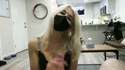 A kinky mistress gets a handjob on the couch.