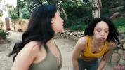 Two hot babes jogging, wild threesome sex adventure follows