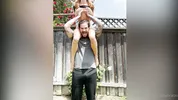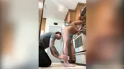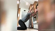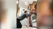 Cassie Del Isla teaches the stepson how to keep his body flexible.