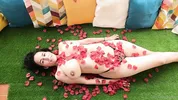 Nanda Reyes rubs her tits with oil in a steamy session.