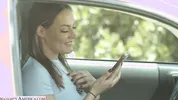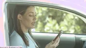 Hot blondie Melody Radford tries on bikini outdoors before heading to the beach