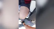 Blonde beauty Marie Rose toys herself with a dildo on the subway in a teaser scene