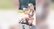 Ezada Sinn tasks fans with a poolside challenge on a special day.