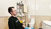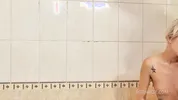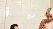 Steamy bathroom scene with sensual oil action.