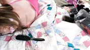 Cute girl gets dominated by evil kitties, reaching intense climax
