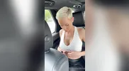 A stunning model changes clothes in the car and shows her body