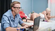 Three hot stepsisters team up for a steamy game with their stepbrother