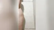A hot woman has sex with a big dildo while taking a shower