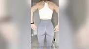 Leggings, camel toe, bending over, pulling them down with Jessie & Jackson