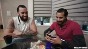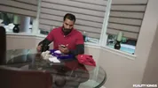 Ezada Sinn sitting on nulis face for shoe cleaning reward.