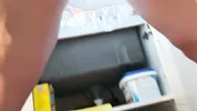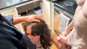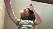 Hot wife Sarah plays alone but isn’t for a long time in this steamy scene.