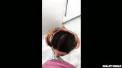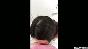 Hailey Rose sucks her daddy's cock while he works in the morning