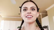 A huge cumshot on Mel’s face after a long cock licking session by Dollscult