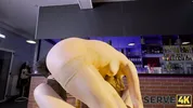 Submissive brunette Serina Gomez gets fucked hard in BDSM action