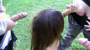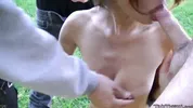 Tiny Trisha 007_blowbang_hd video features a brunette getting a blowbang