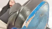 Hot woman has sex on the gym rack and shows her feet