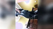 Kiyomi Leslie's twerking in the bathroom, a steamy leak.