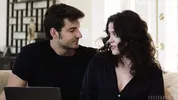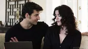 Shane licks Mel's tits for the first time, then she makes him cum on her boobs.
