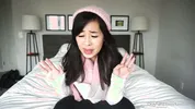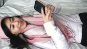 Asian camgirl Kaedia Lang shows off her cute pantyhose-ripping outfit