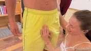 Juicy Amy Muscle VIP offers deep throat action to her fans