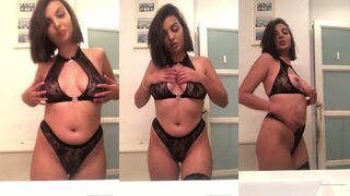 A woman named Natalia LaBelle trying on different thongs