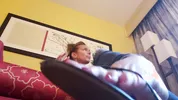 A girl crawled on the floor to reach her partner, Taylorhalll