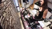 Gynarchy Goddess edging and e-stim nipple play with a bound latex slave.