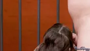Newbie Liz Jordan suspended and teased in Device Bondage style