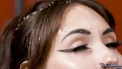 Adrianna Jade gets balls sucked and receives a messy cumshot in this steamy scene.