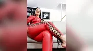 Leather tease and denial with Mistress Ezada Sinn in an exclusive clip