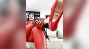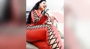 Ezada Sinn in fishnet socks, teasing with her dominatrix charm
