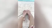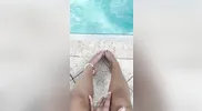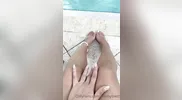 Foot fetish action by the pool, getting ready for tonight