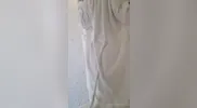 Shower in a white t-shirt and latex, Anc1lla takes a break from online life.