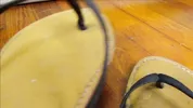 Whitney stuck you with creamed flip flops, a perfect foot fetish treat.