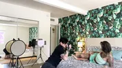 Getting ready to shoot a scene with Leigh and Kristen, but here’s an earlier photo shoot.